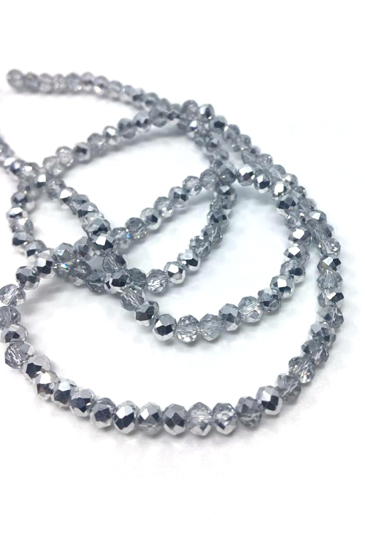 4 Mm Basık Kristal Cam Boncuk Çift Gümüş Renk