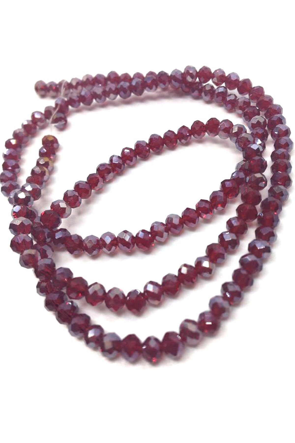 4 Mm Basık Kristal Cam Boncuk Janjanlı Bordo Renk