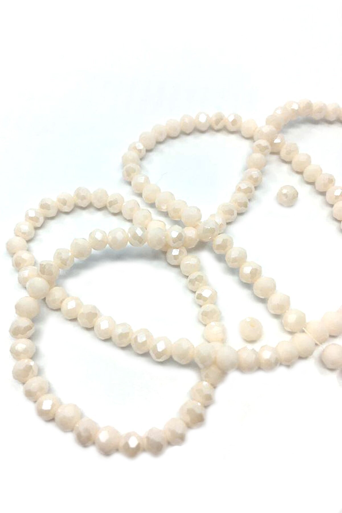 4 Mm Basık Kristal Cam Boncuk Mat Sedef Krem Renk