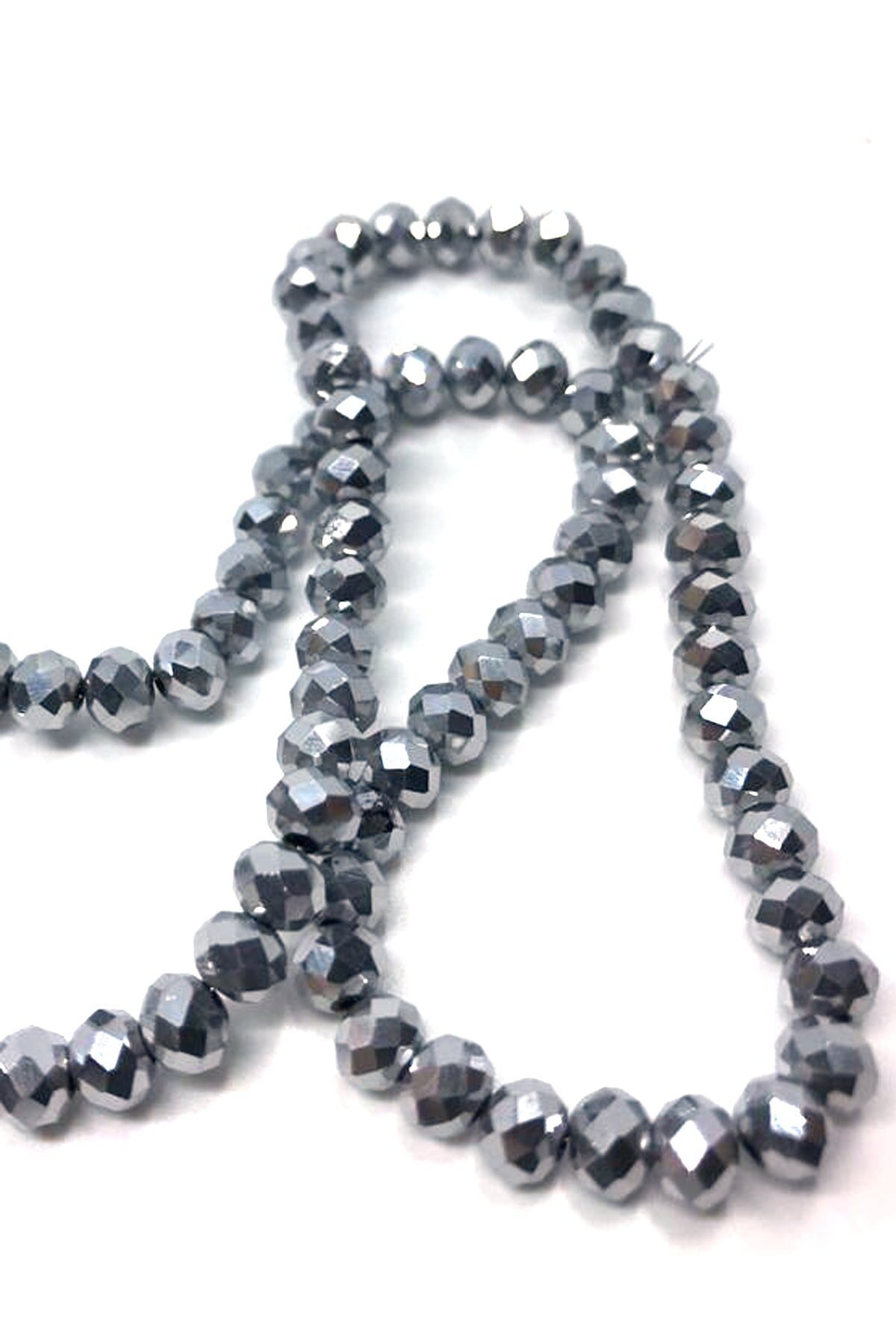 6 Mm Basık Kristal Cam Boncuk Kaplama Gümüş Renk