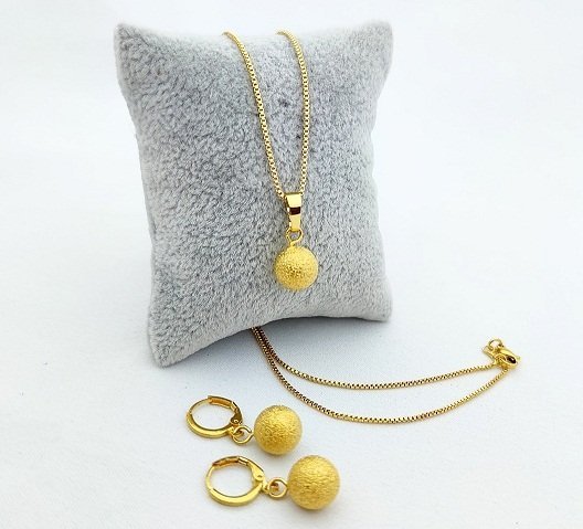Altin Kaplama Desenli Top Kolye Kupe Set 3326eb