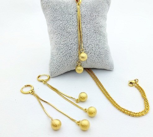 Altin Kaplama Sallantili Top Kolye Kupe Set 3327eb