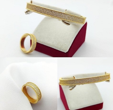 Altin Kaplama Zirkon Tasli Kelepce Bileklik Yuzuk Set 3328eb