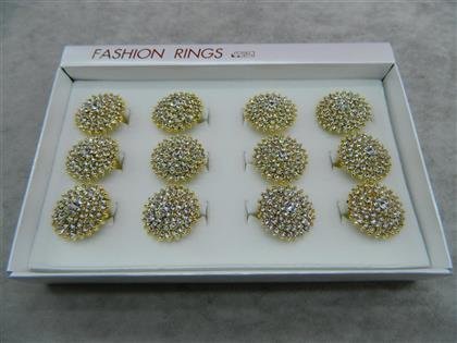 Altın Rengi Kaplamalı Kristal Taşlı Bayan Yüzük 12 Adet 2805mp
