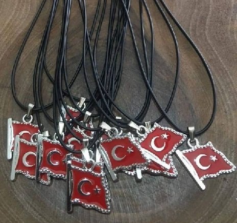 Deri Ipli Metal Ay Yildiz Bayrak Sallantili Kolye 12 Adet 3564ub