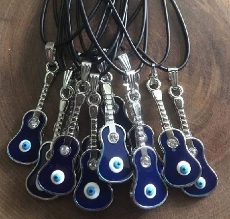 Deri Ipli Metal Gitar Sallantili Kolye 12 Adet 3524ub