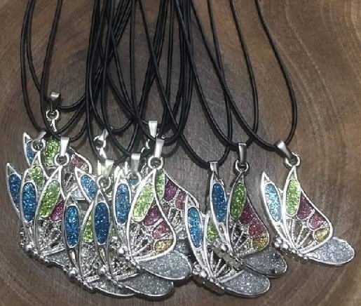 Deri Ipli Metal Kelebek Sallantili Kolye 12 Adet 3523ub