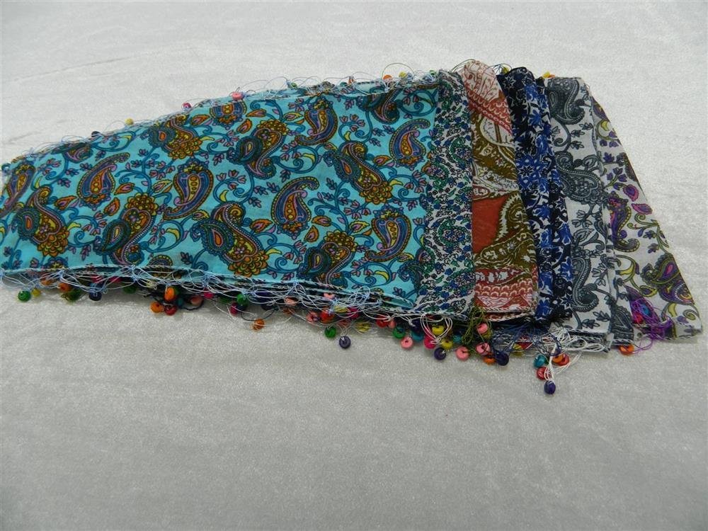 Desenli Kenarı Ahşap Boncuk İşlemeli Fular Şal 12 Adet 2291mp