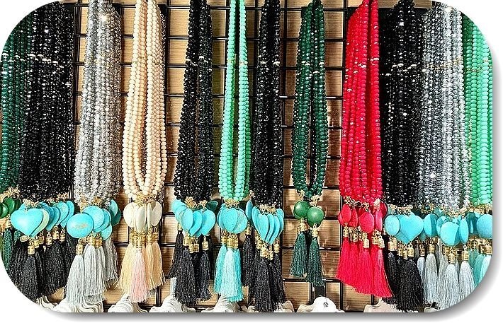 Kristal Boncuklu Dogal Tasli Puskullu Kolye 10 Adet 9445kb