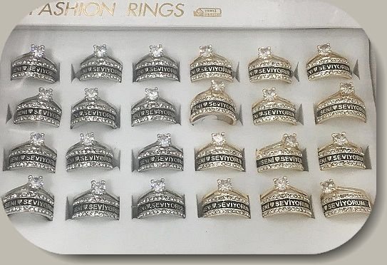Kristal Tasli Seni Seviyorum Bayan Yuzuk 24 Adet 6190mp
