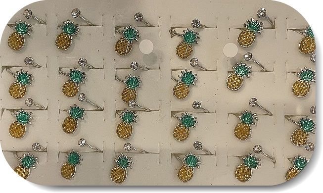 Lak Kaplama Zirkon Tasli Mineli Ananas Yuzuk 24 Adet 4078el