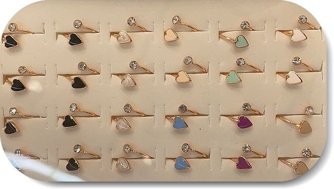 Lak Kaplama Zirkon Tasli Mineli Ayarlanabilir Kalpli Yuzuk 24 Adet 4070el
