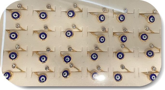 Lak Kaplama Zirkon Tasli Mineli Ayarlanabilir Nazar Yuzuk 24 Adet 4073el