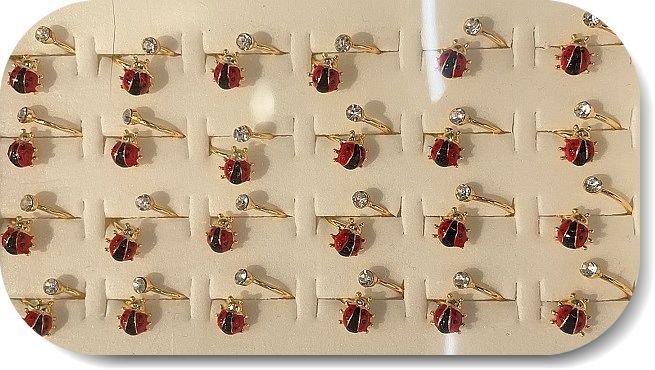 Lak Kaplama Zirkon Tasli Mineli Ayarlanabilir Ugur Bocegi Yuzuk 24 Adet 4081el