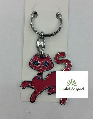 Metal Mineli Pembe Kedi Anahtarlık 717as