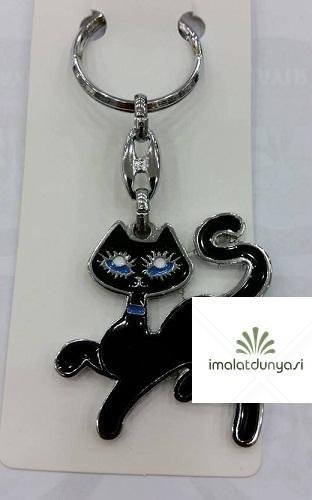 Metal Mineli Siyah Kedi Anahtarlık 690as