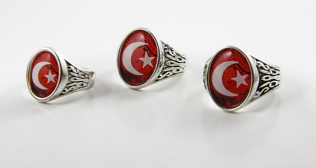 Türk Bayrağı Ay Yıldız Erkek Yüzük 12 Adet 6503as